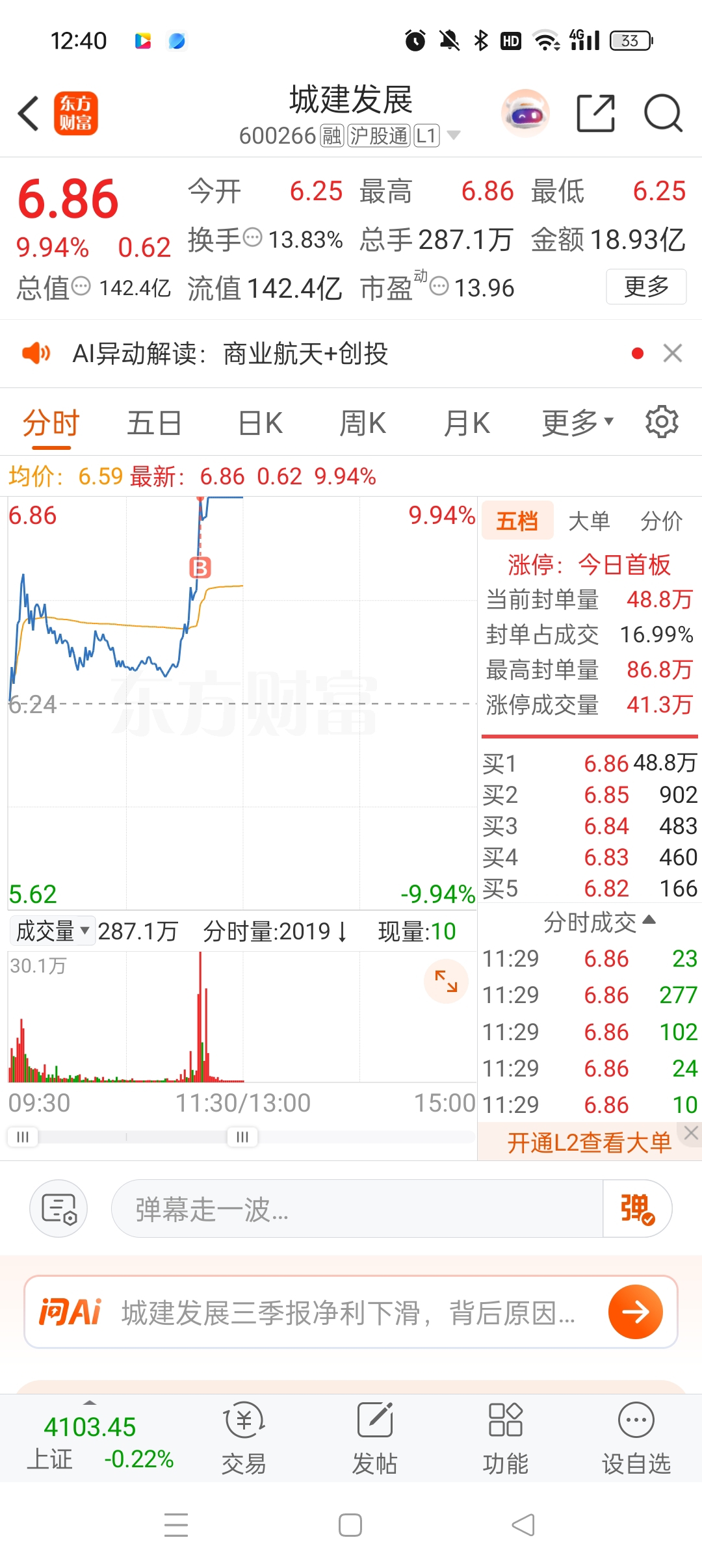 $城建发展(SH600266)$ $航天发展(SZ000547)$ $中国卫星(SH600118)$ 为了龙头,为了航天,为了信仰。我将剩下的筹码全部打满了,尽力了兄弟们。话说逆境带领航天回流的股,下周一是不是要享受一字板的待遇了?