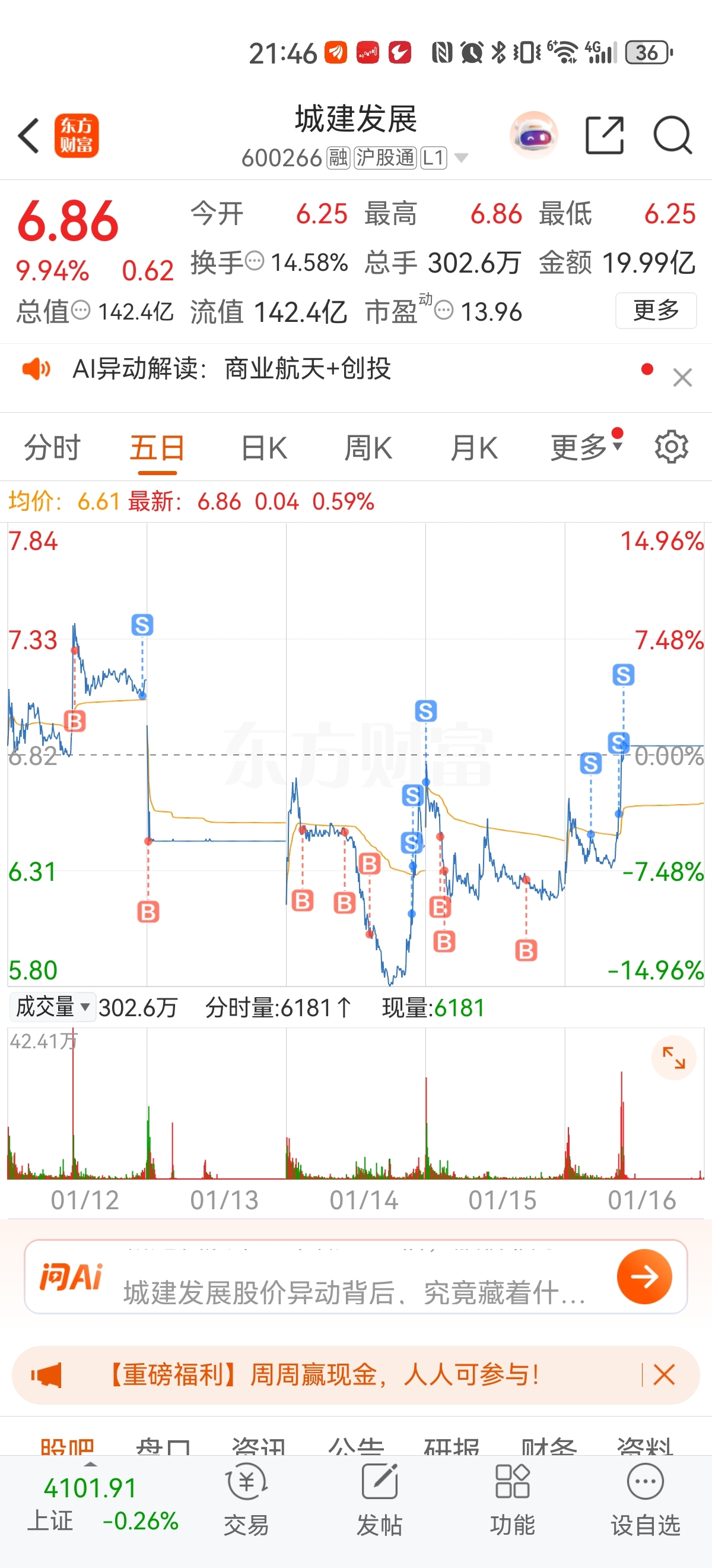 $城建发展(SH600266)$ 按前两天的惯性都是早盘涨,下午跌,想的早上糕点踢掉,下午低点再接回来,今天T飞了