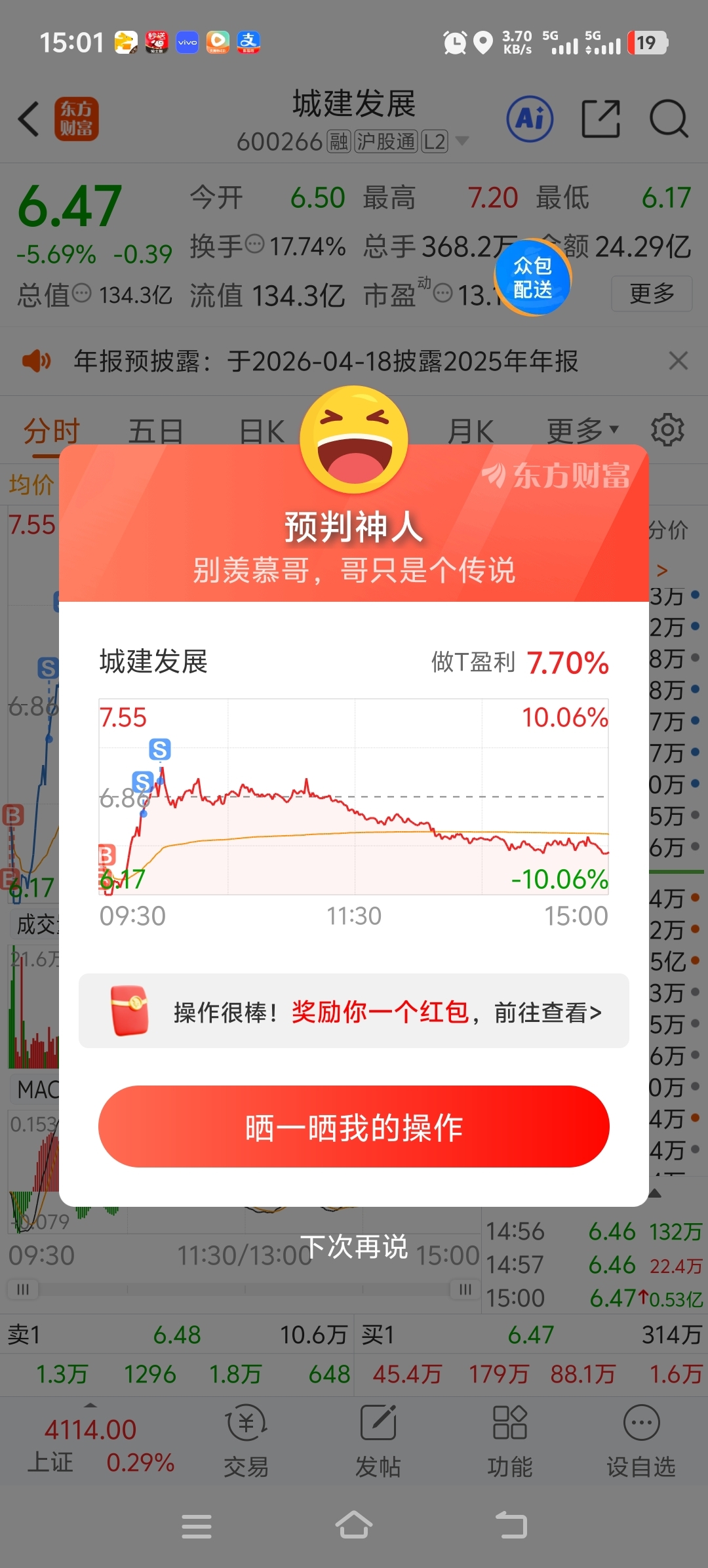 $城建发展(SH600266)$ 做t.就是。随他吧