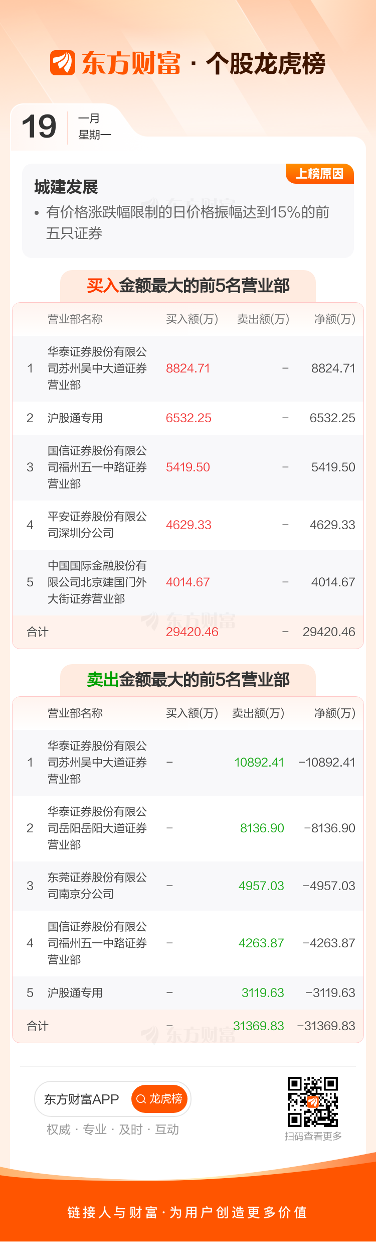 城建发展(600266)龙虎榜数据(01-19)