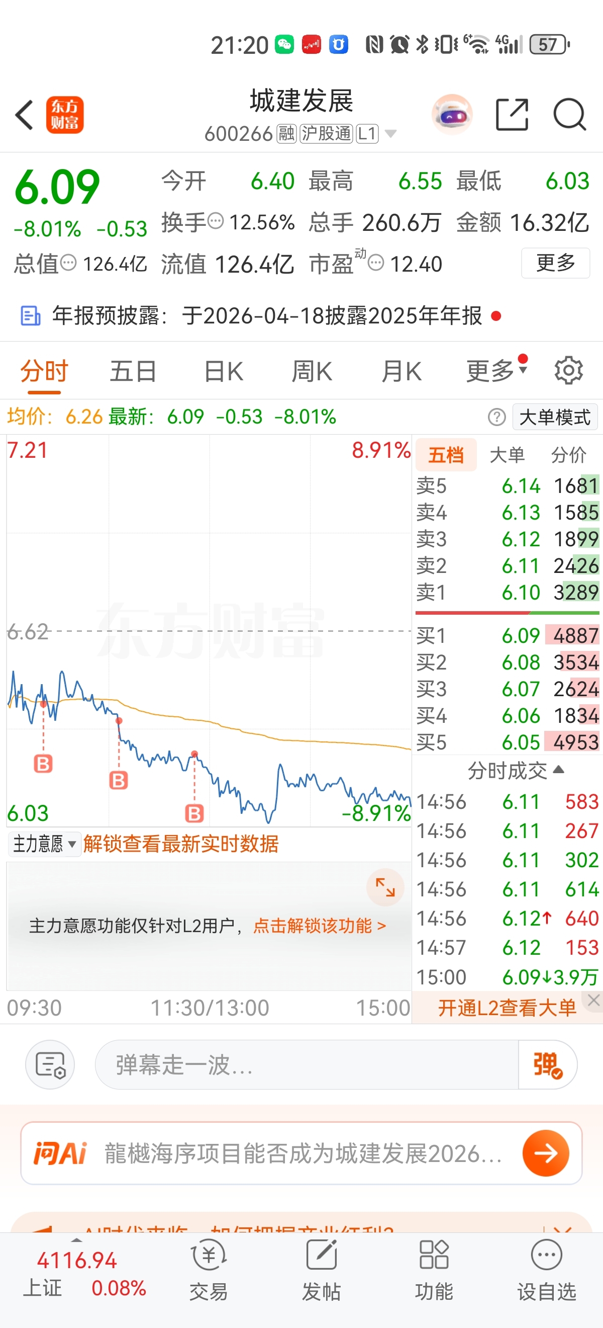 $城建发展(SH600266)$ 今天补仓失败了,尾盘没有拉伸,没做到T