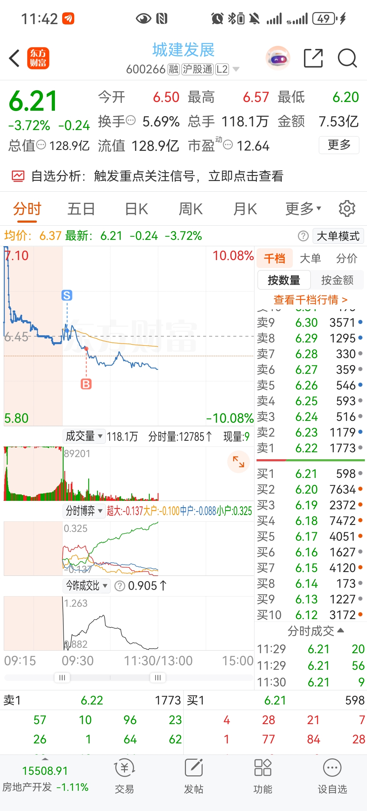$城建发展(SH600266)$ 赚了点走了又接回来被套住了