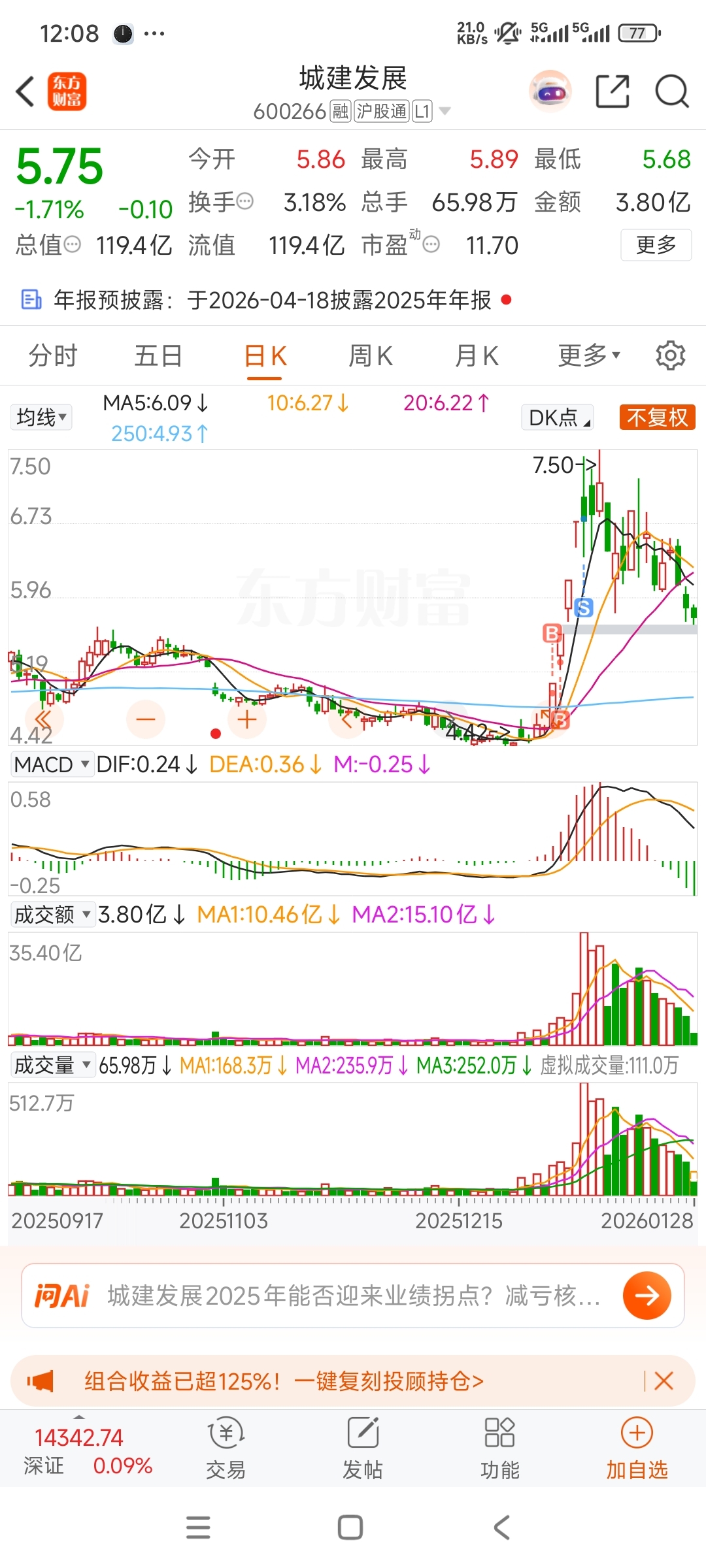 $城建发展(SH600266)$ 主力被我挂山顶了,回来看看
