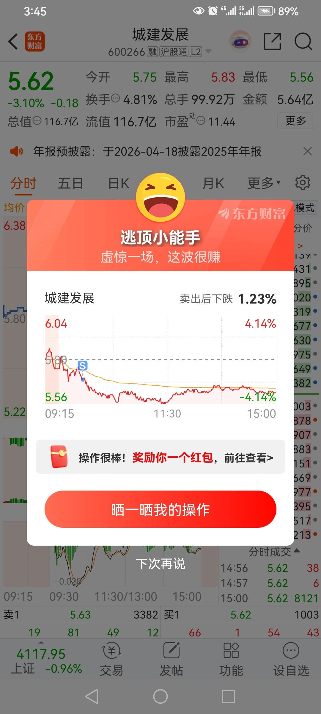 $城建发展(SH600266)$ 哥是割肉走的,一边跌一边补,临了还要被恶心一下