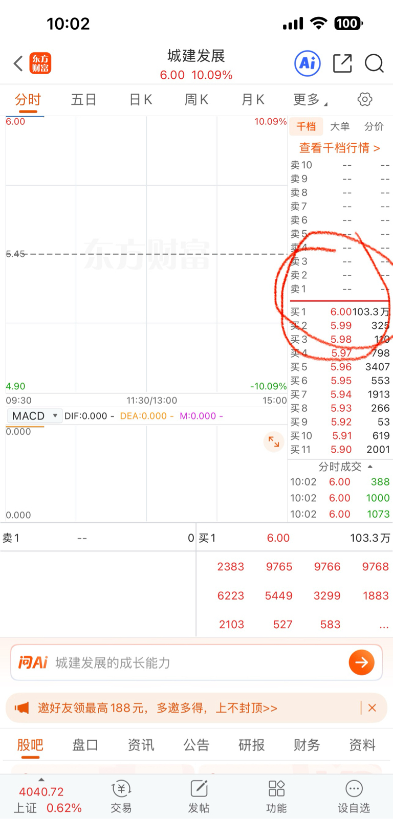 $城建发展(SH600266)$ 我去 刚才封单只剩 3万了, 我赶紧出了一部分.... 刚吃完 一看 103W手的封单了