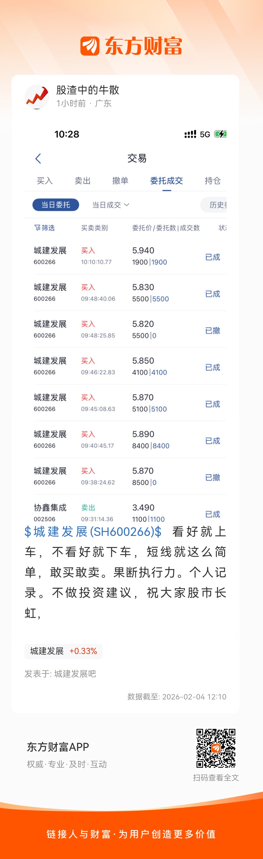 $城建发展(SH600266)$ 看好就上车,不看好就下车,短线就这么简单,敢买敢卖。果断执行力。个人记录。不做投资建议,祝大家股市长虹,