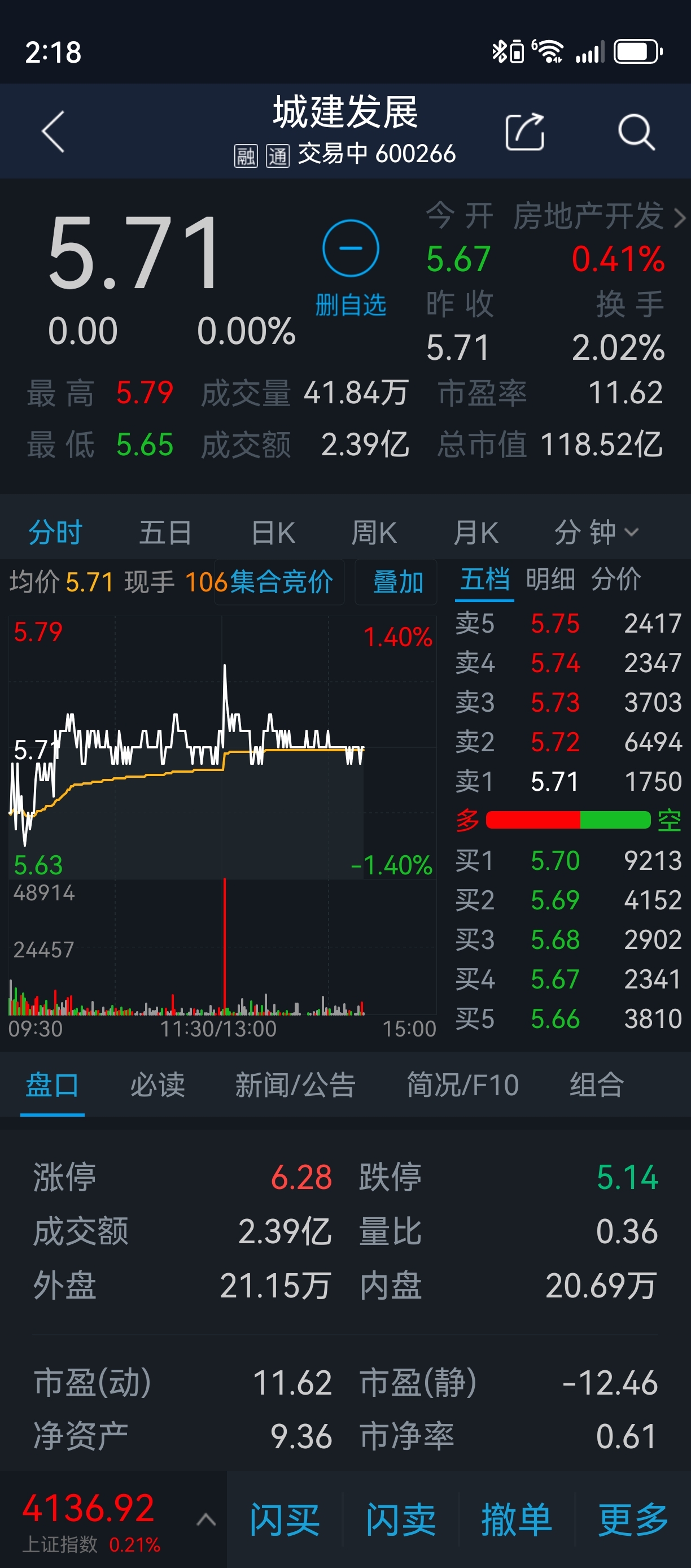 $城建发展(SH600266)$ 是么意思?搞了一天的不上不下?