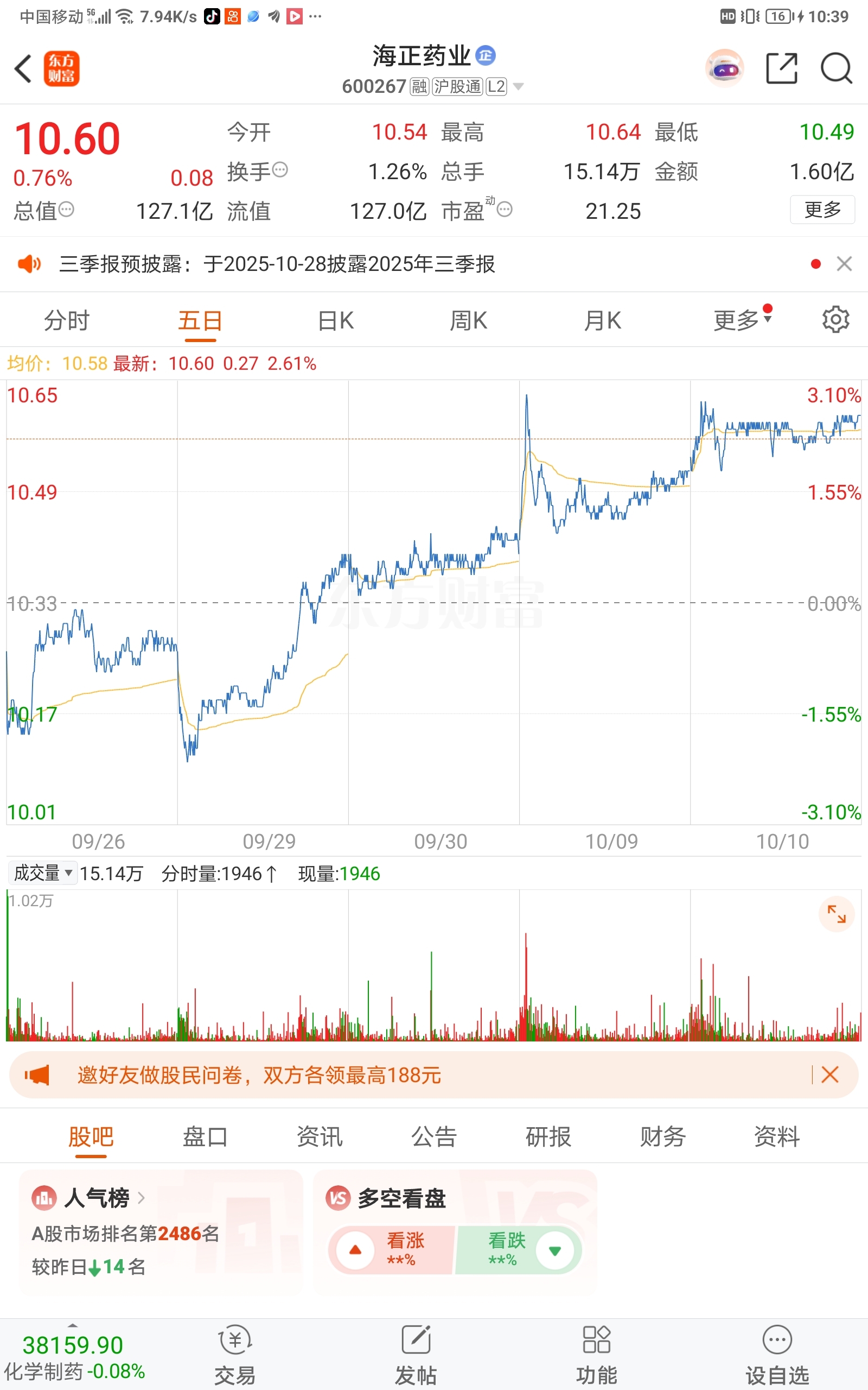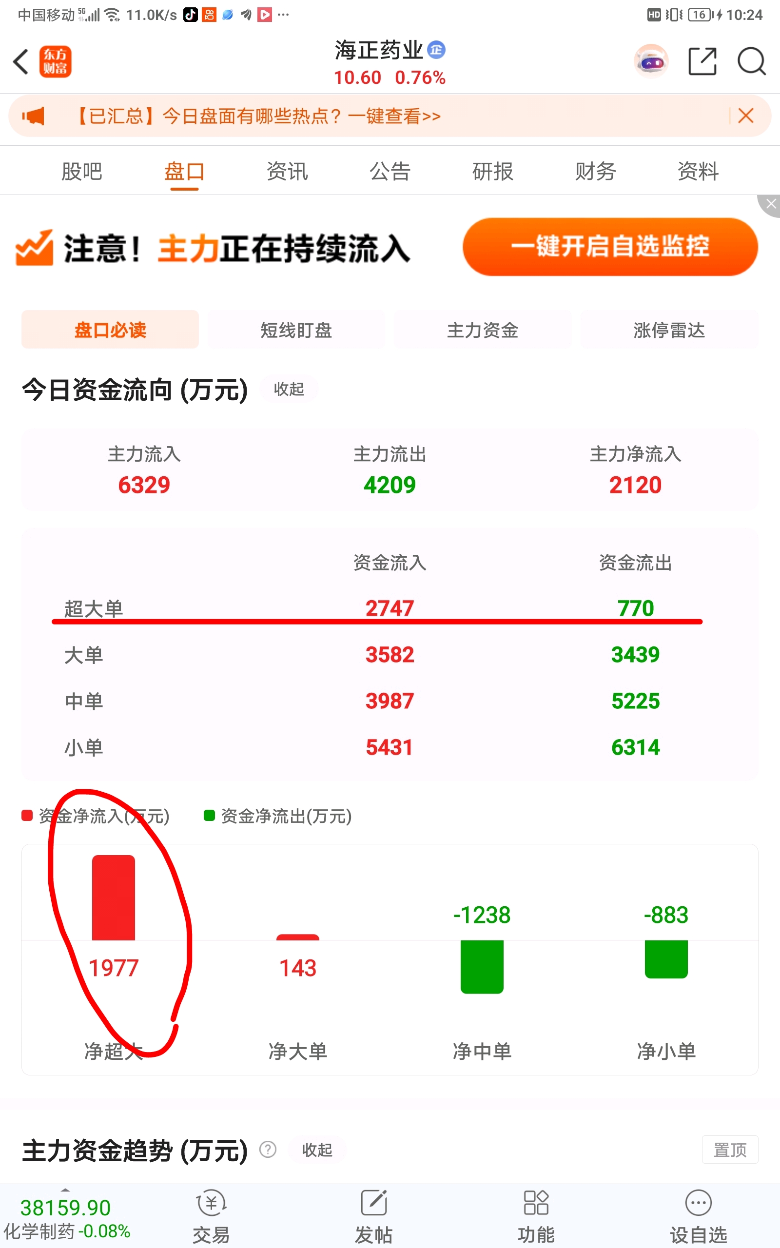 说实话今天主力有点硬朗,在大盘满山绿+指向的坑虫爹积极砸盘的情况下还能坚持,说明主力已经很看好海正了。