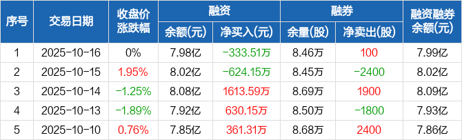 海正药业:融资净偿还333.51万元,融资余额7.98亿元(10-16)
