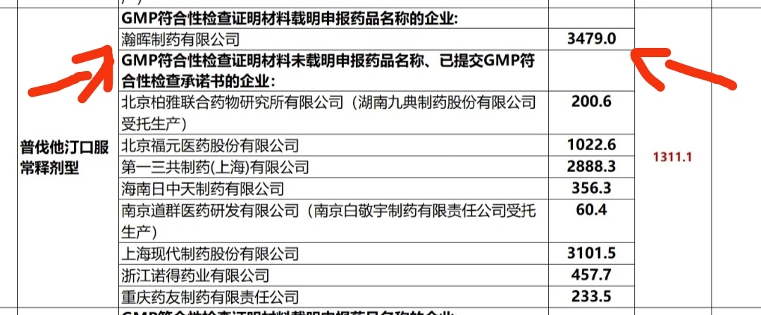 普伐他汀:医药机抅报量(万)3479 各厂牌平均值(万片/万粒/万袋/万支等)1311.1