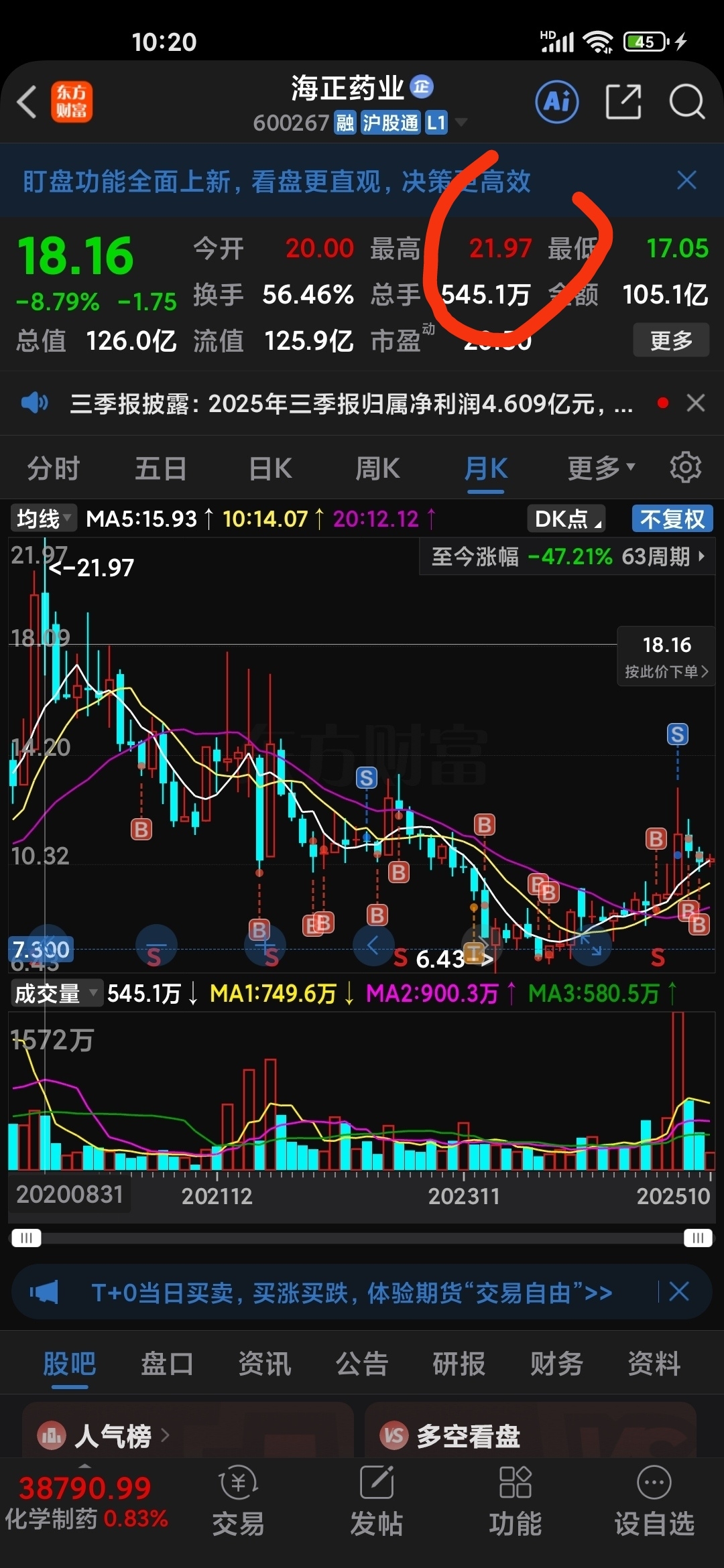 三季报不错没雷就好上调海正药业最低目标价至:21.97*=25.43元/股偶解套