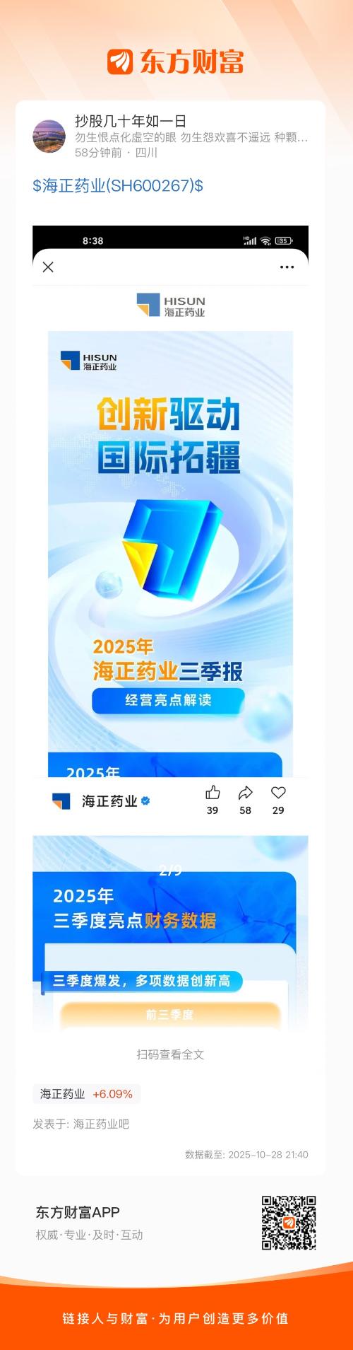 $海正药业(SH600267)$ 总结:史上最强三季报