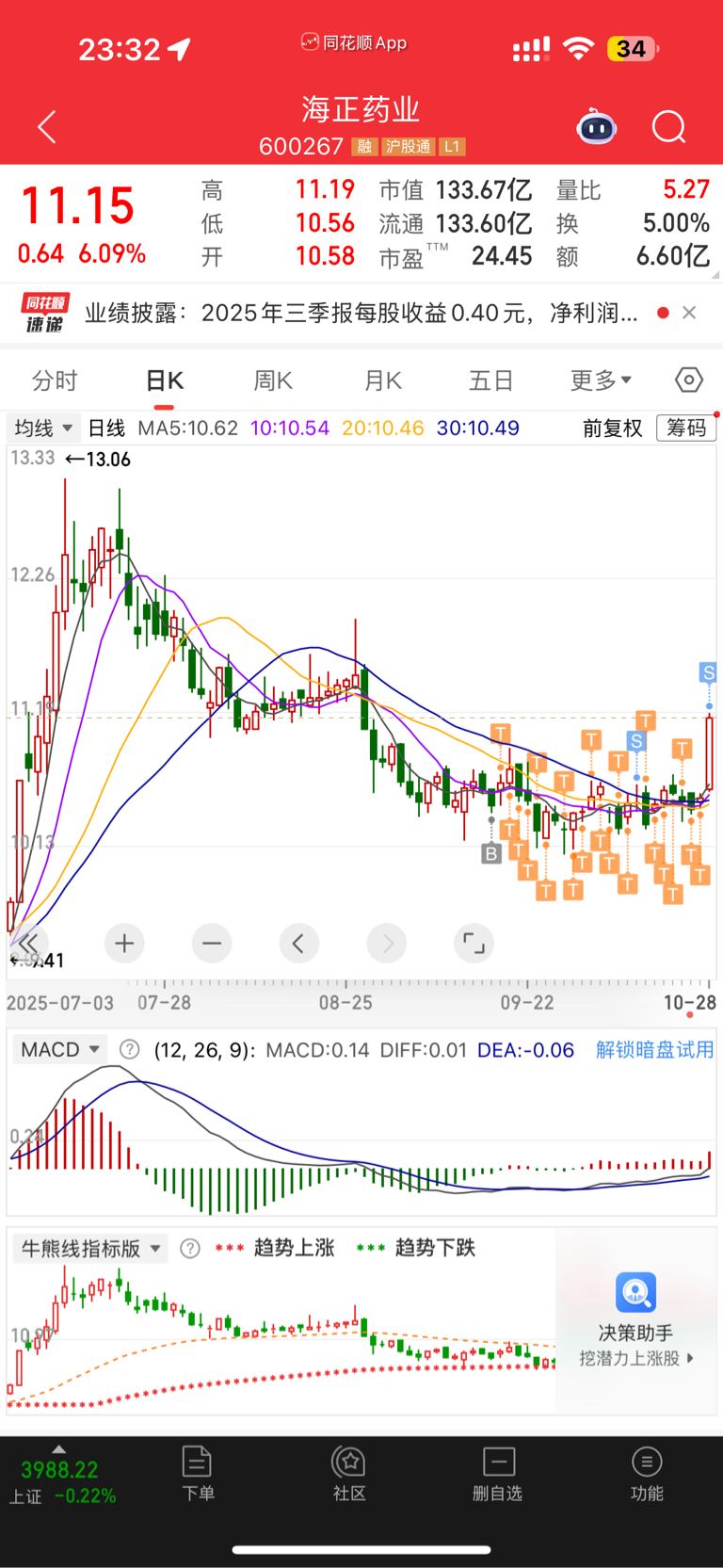 $海正药业(SH600267)$ t了28个交易日 一共才12个点不到的利润 这破股真抠