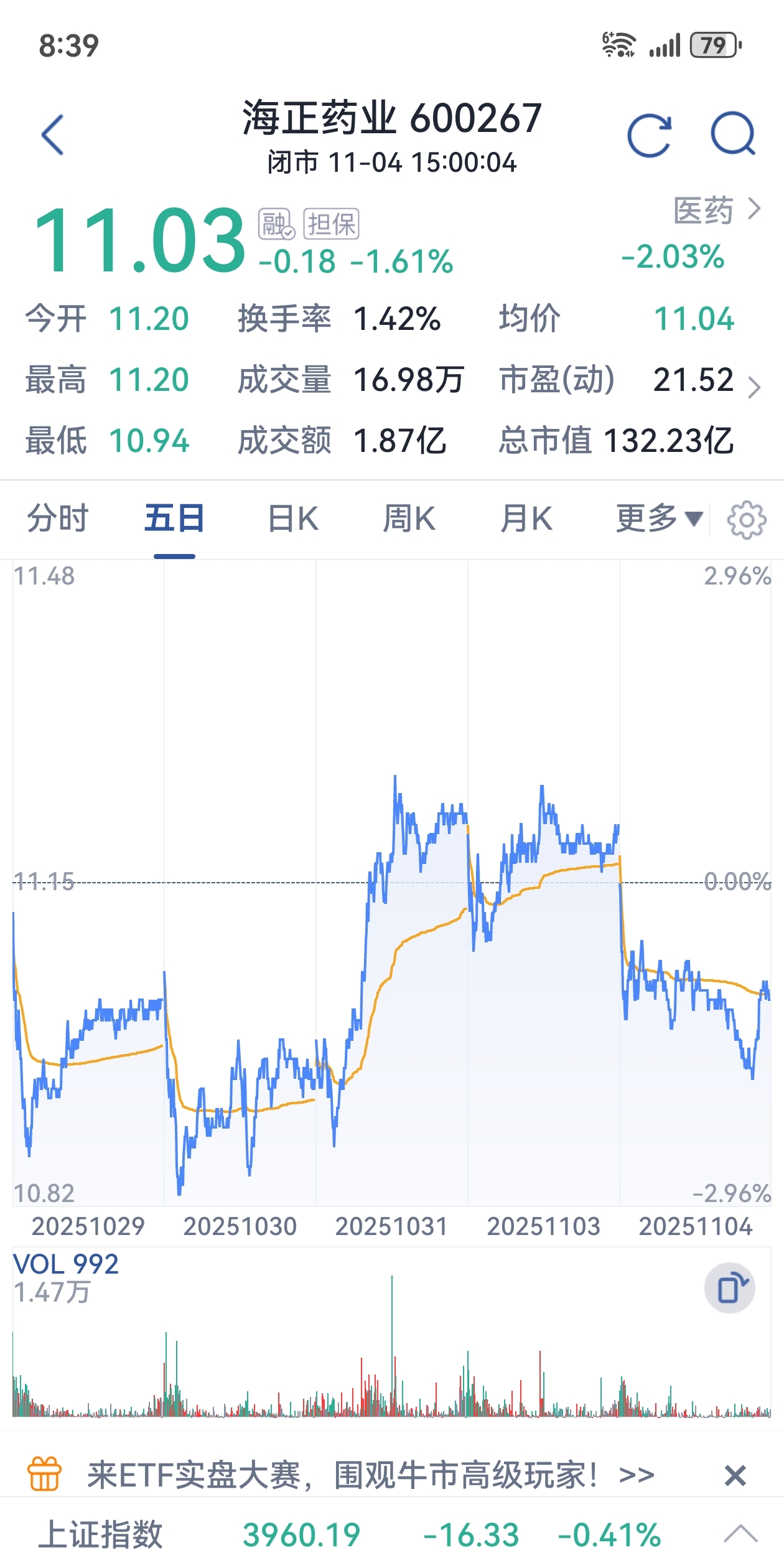 $海正药业(SH600267)$ 出现短期判断错误,需要休息冷静一下