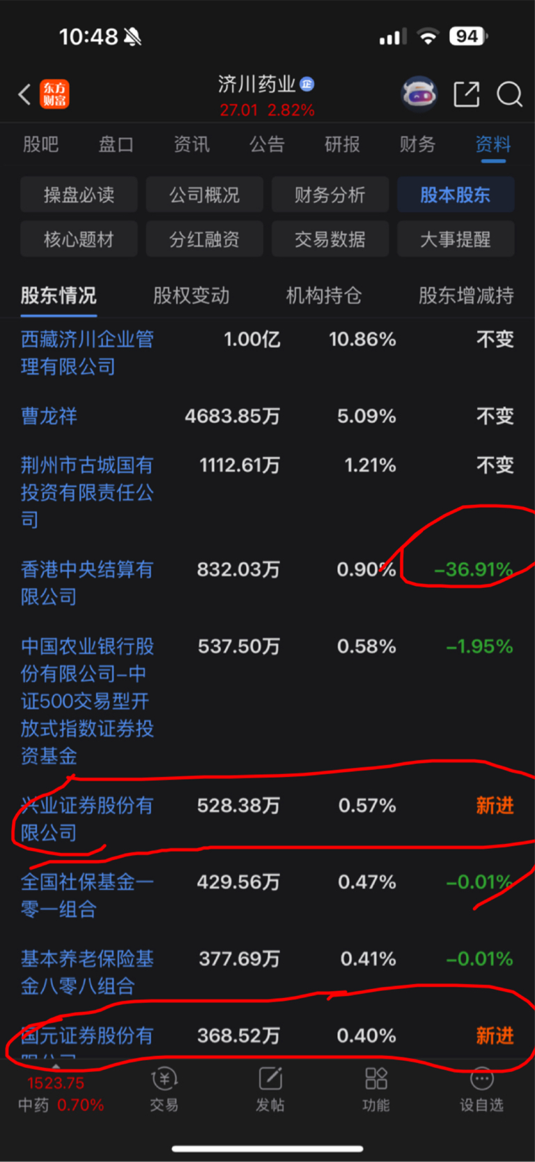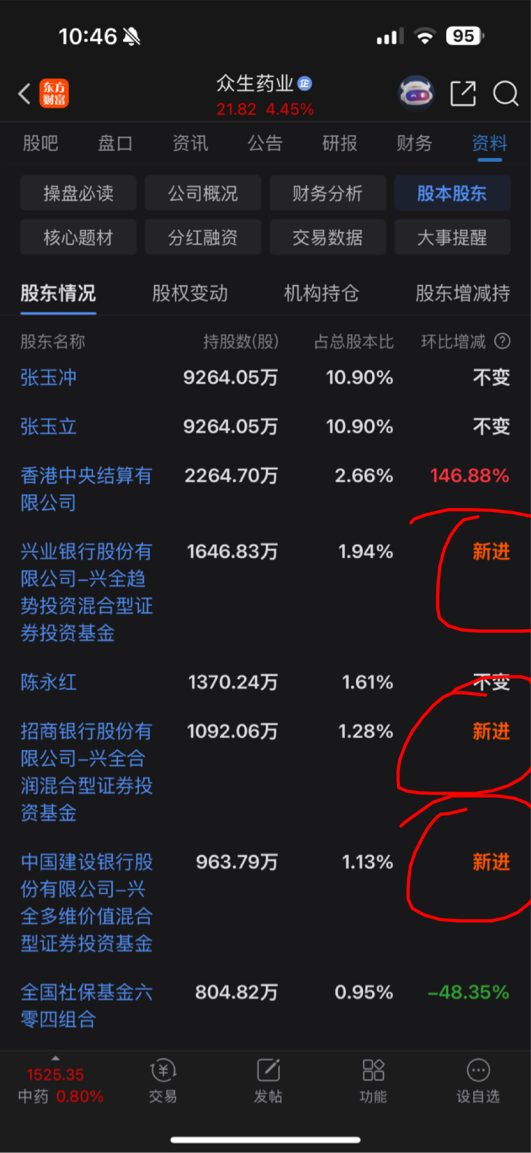 有新游资进来,香港中央结算也在增持,比众生药业、济川药业的股东持股情况强太多了!