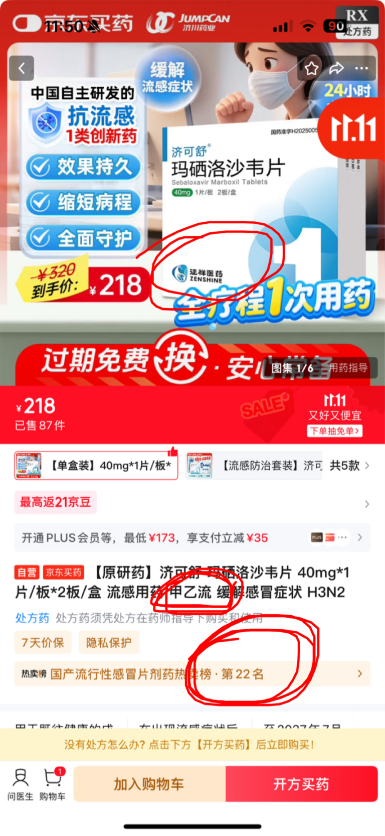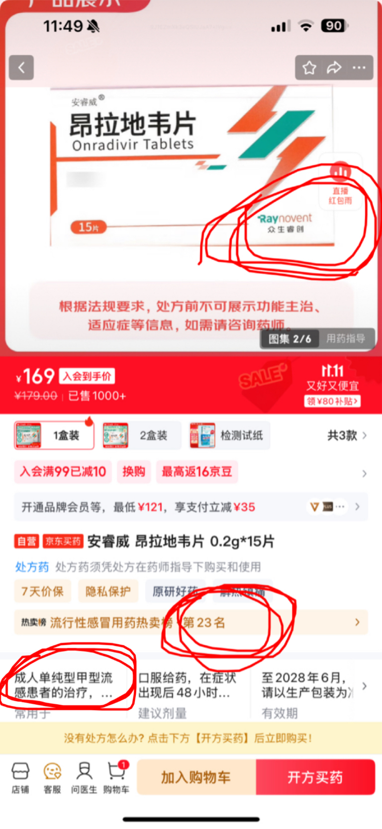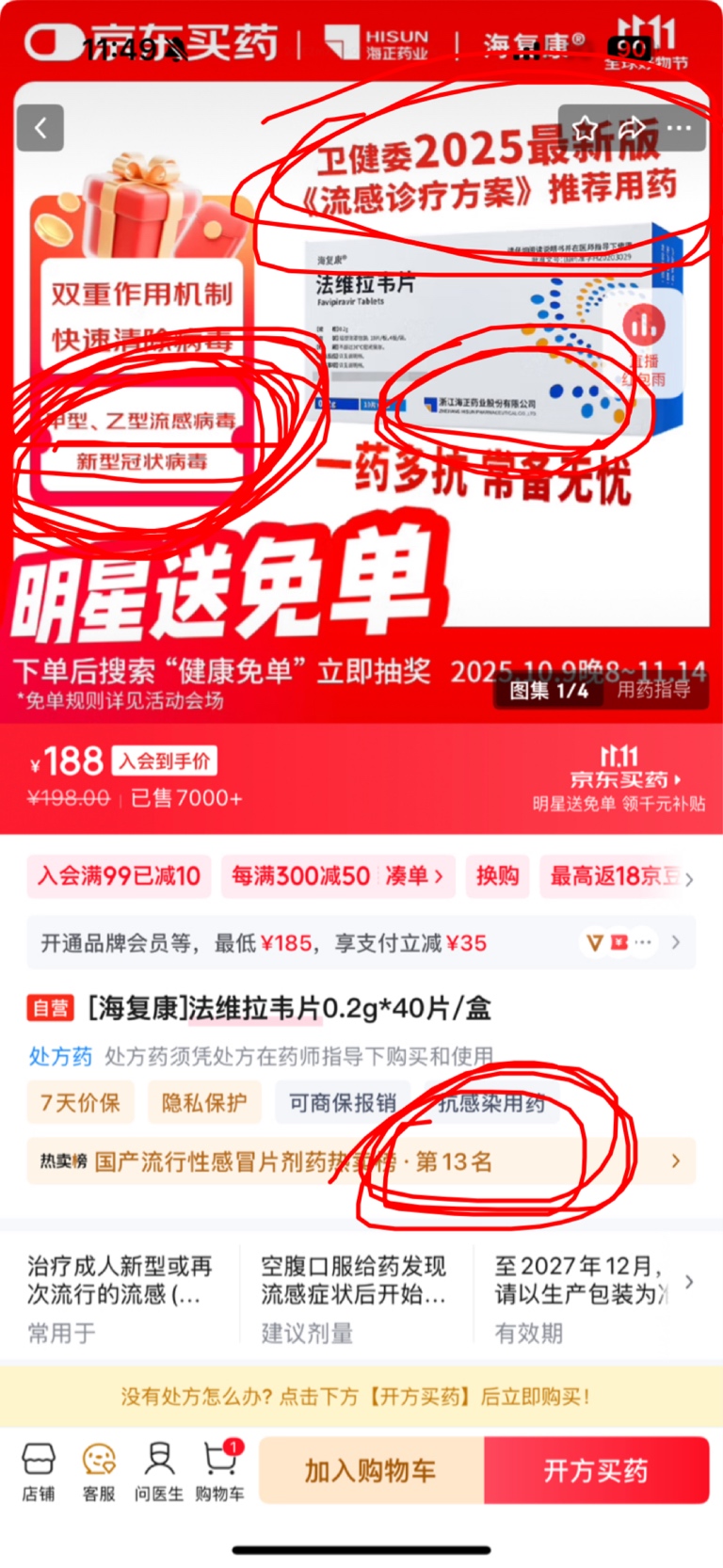 明显,除了玛巴洛沙韦,买法维拉韦更好。(法维拉韦在京东排名第13名,比众生药业、
