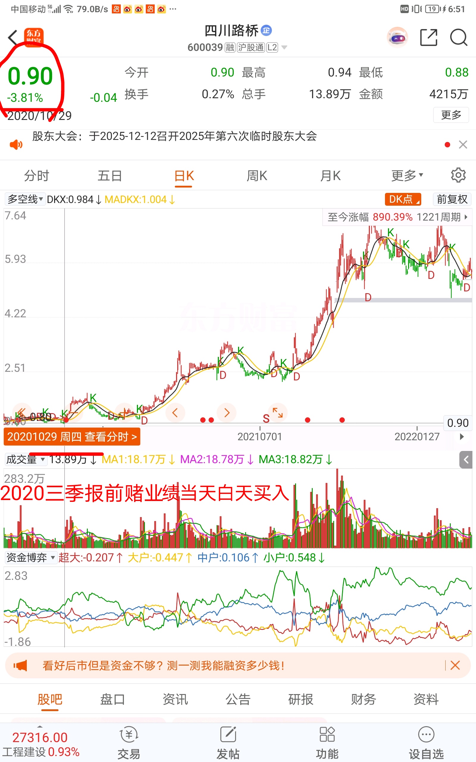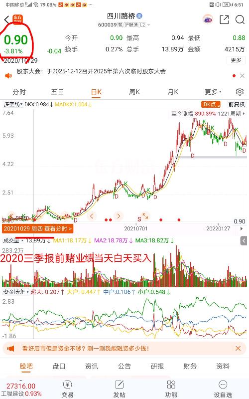 本来这个与海正无关的帖我是不想发出来扰民的,只因为指向九点如一日每隔两天就说一次其他股票来扰民,那么我两年说一次其他股票不算过份吧?我第一次买入四川路桥是2020.10.29日三季报前赌业绩抄底。$海正药业(SH600267)$$四川路桥(SH600039)$ //@麻雀涅槃已重生 :我之前是买基金的,2020年2月3日正月开市大跌,我想等4日再跌一点就全部买入基金,谁知4日就大涨了,我又想等5日,5日也是涨,一直等到周五看看都涨了,我再查看到只有酒类没涨就买了大量酒的基金,后又想想“正月酒”走亲戚都过去了,未来天气热了疫情过去后亲朋好友聚餐时啤酒生意一定会很好,但没有啤酒的基金所以我特意注册了证券账户就是为了买啤酒股票的。双休日去超市看到超市的人这么多我就选择了几个超市入自选...