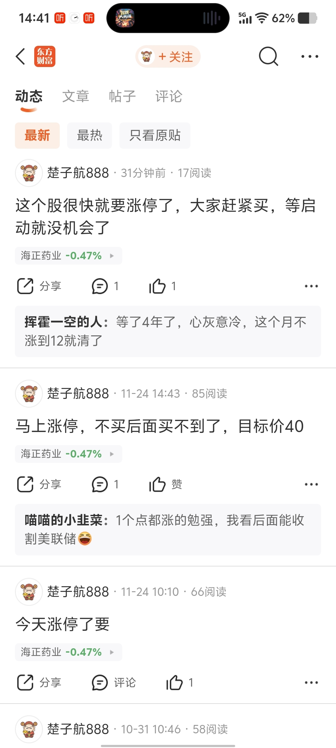 郑重声明:用户在财富号/股吧/博客等社区发表的所有信息(包括但不限于文字、视频、音频、数据及图表)仅代表个人观点,与本网站立场无关,不对您构成任何投资建议,据此操作风险自担。请勿相信代客理财、免费荐股和炒股培训等宣传内容,远离非法证券活动。请勿添加发言用户的手机号码、公众号、微博、微信及QQ等信息,谨防上当受骗!