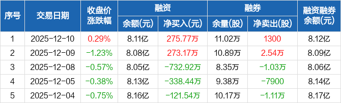 海正药业:融资净买入275.77万元,融资余额8.11亿元(12-10)