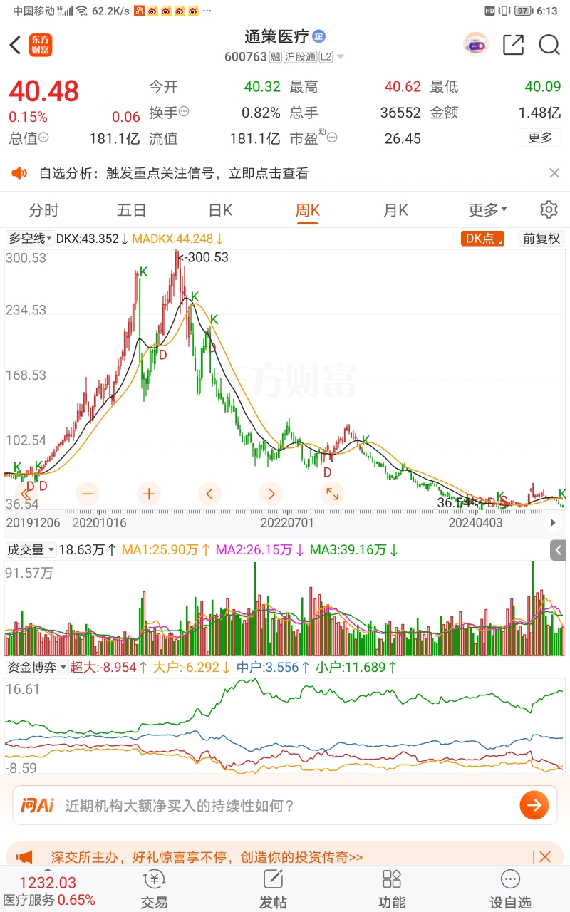 记得2020年秋天通策医疗160多元时我亲戚问我能不能买?我研究几个小时后告诉他这种市净率特别高的股票我是不会买的,结果涨到三百多,是我错了吗?其实最终还是Si场错了,因为现在只有40元,而且在基本面相当稳定的情况下回归到了40元。