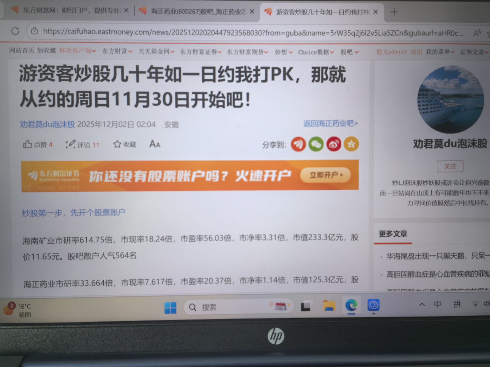$海正药业(SH600267)$ 谈股麻雀泡沫,今天已收市,到了年底,你誓言旦旦的承诺到了兑现的时候: