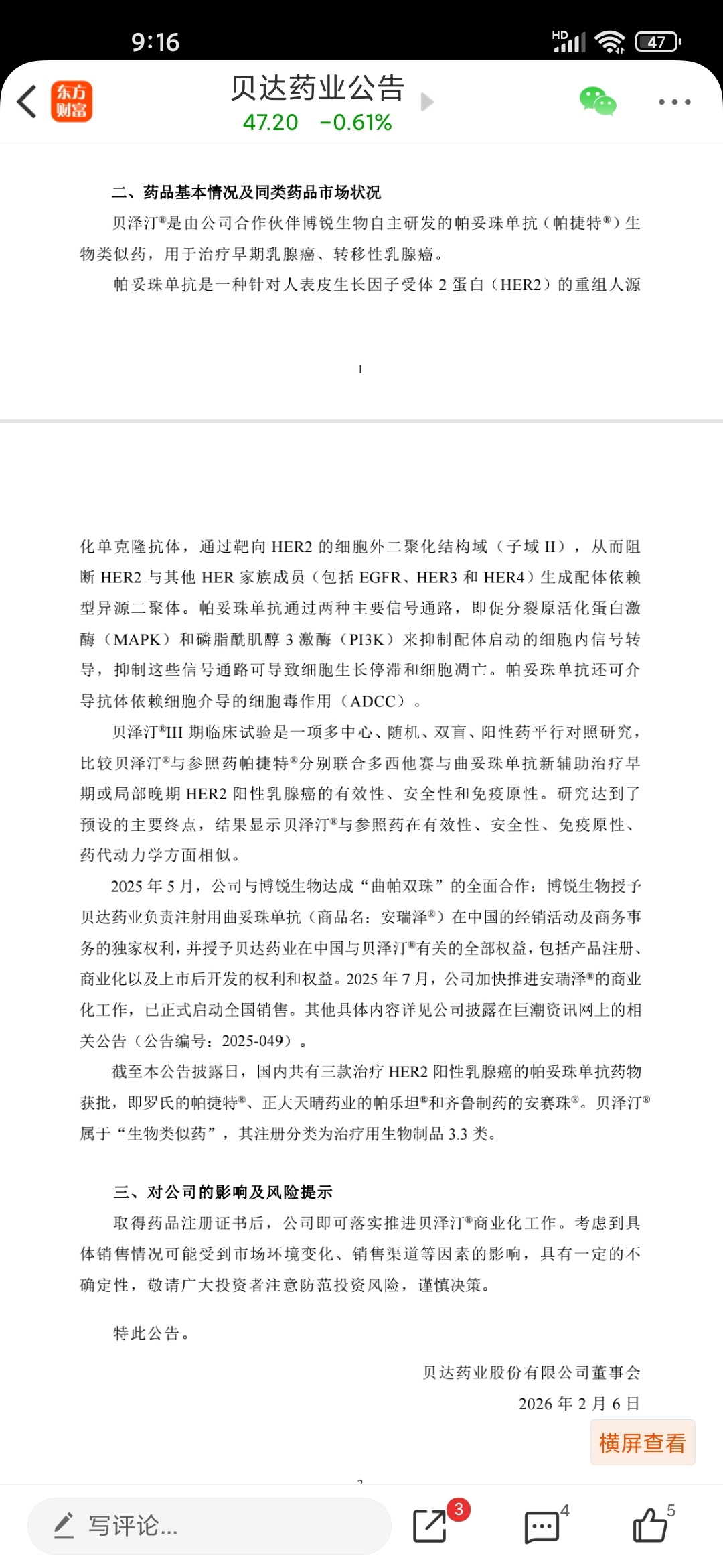 $海正药业(SH600267)$ 贝达发公告了,难道海正又是替他人做嫁衣裳,自己然并Nuan