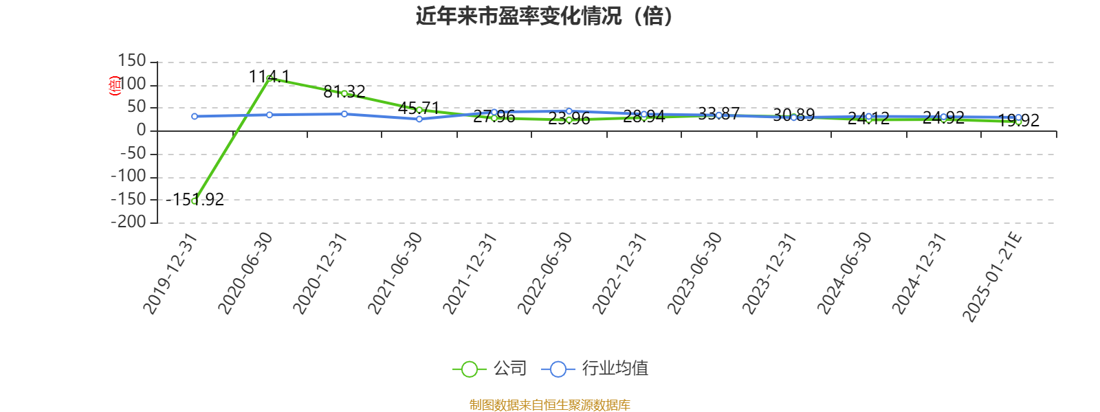 以本次披露业绩预告均值计算,公司近年市盈率(TTM)图如下所示: