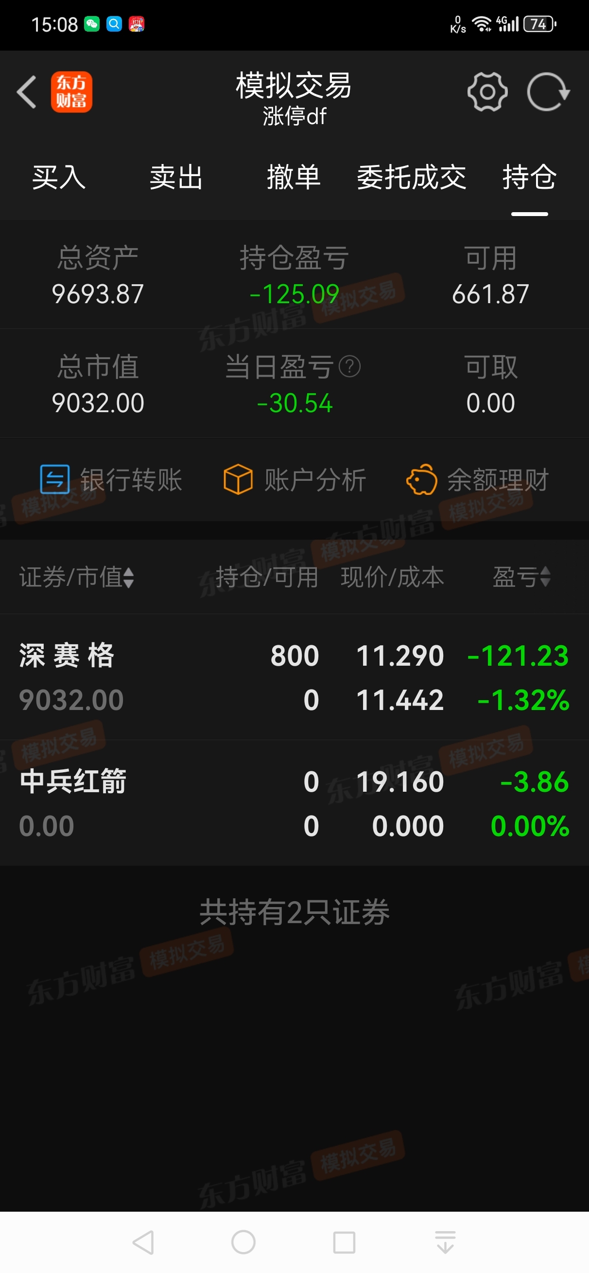 模拟卖出中兵红箭,买入深赛格