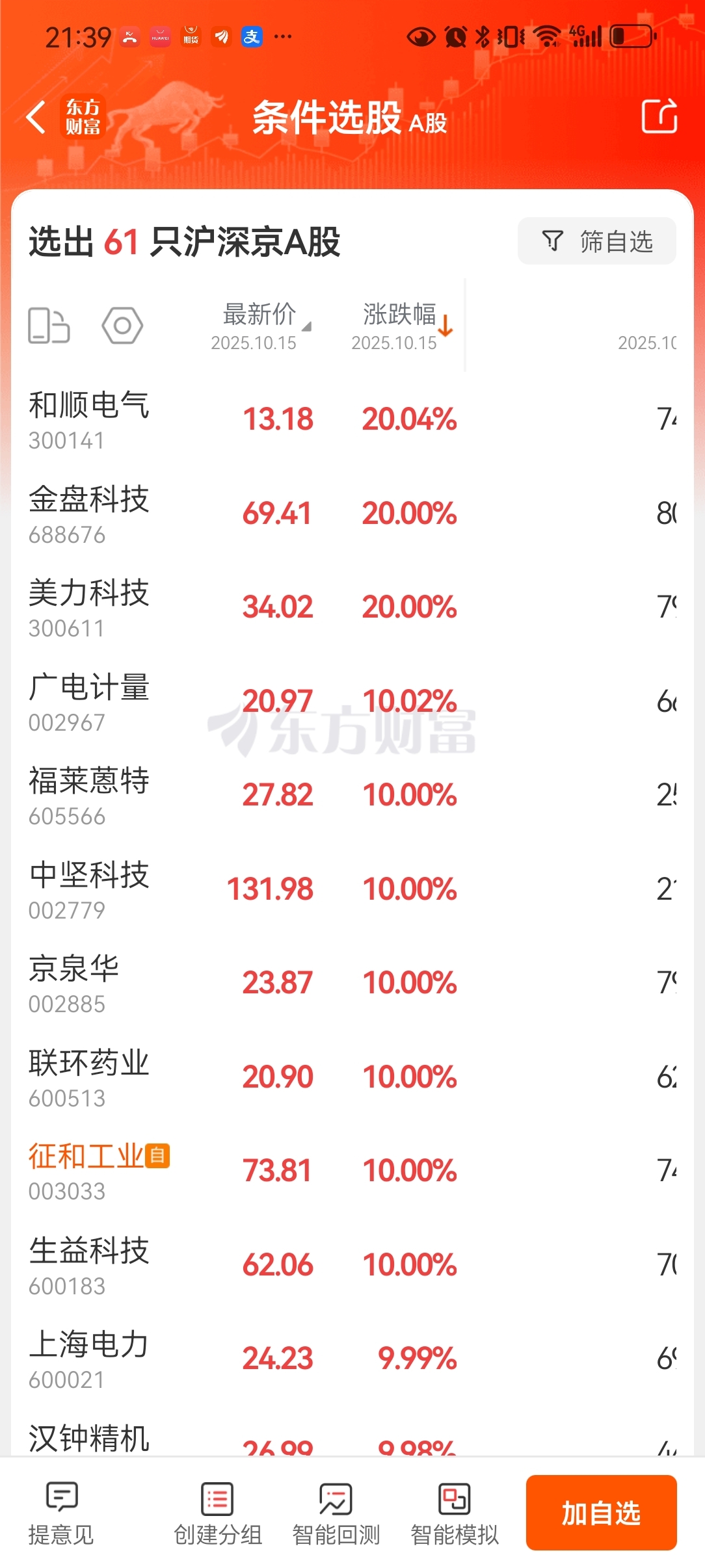 比如我用同一条件选出来的这61个票都是一样的情况!