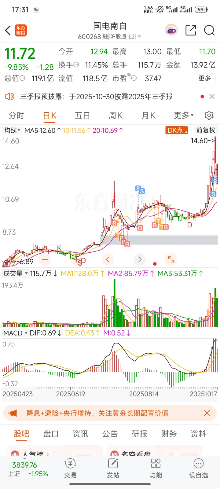 $国电南自(SH600268)$ 这票躲过一劫,去其他票被埋了,总之就是去哪里都会被埋