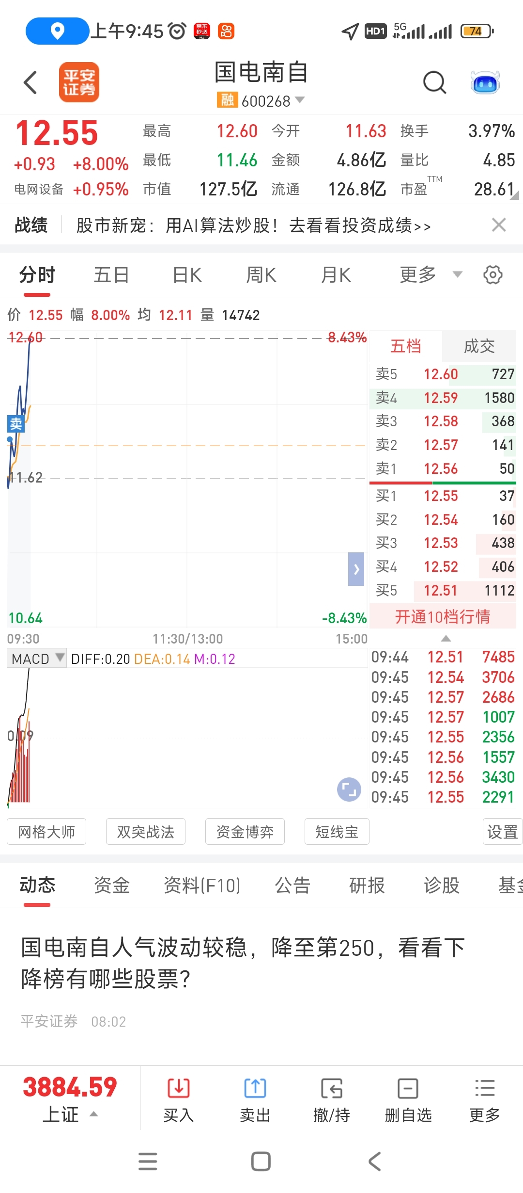 $国电南自(SH600268)$ 还好我卖了,不然又吃一个涨停板
