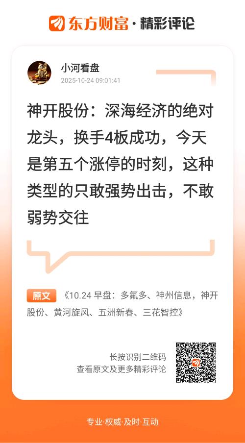 //@小河看盘 :神开股份:深海经济的绝对龙头,换手4板成功,今天是第五个涨停的时刻,这种类型的只敢强势出击,不敢弱势交往 $国电南自(SH600268)$$安泰科技(SZ000969)$$海峡股份(SZ002320)$