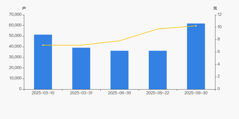 2025年3月10日至今,公司股东户数显著增长,区间涨幅为20.38%。2025年3月10日至2025年9月30日区间股价上涨43.91%。