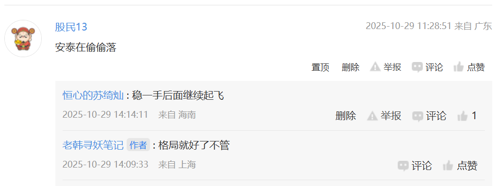 这是毛老板把机构挂山顶啊,毛老板溜快3个亿,机构就买了2个亿,这要是散户接力结果不敢想,机构就不一样了,城管希这里还t了一把,说明还是看好有预期。既然昨天放量全天水上震荡,薅5没一个拉萨,今天还是有机会在里面,等企稳后续表现还会有所表现,安泰大伙都有点按耐不住了吧,都跟着老韩格局三天了,现在咱们收获20多个点,都耐心点这会都成功一半了,咱们在把握好后面这段行情,吃完在溜30个点也不是没有可能,好标不怕磨。