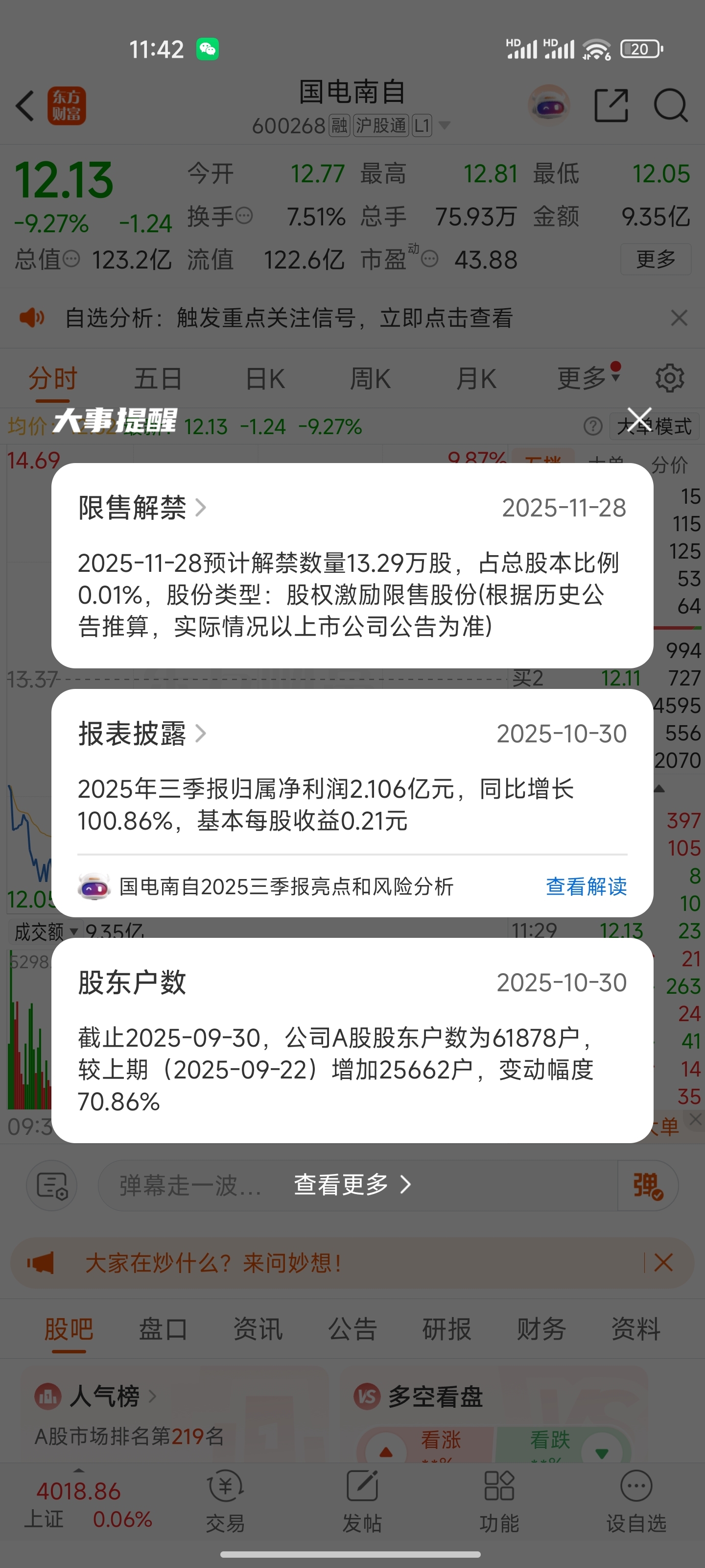 $国电南自(SH600268)$ 散户增加了百分之70多,