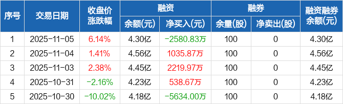 国电南自:融资净偿还2580.83万元,融资余额4.3亿元(11-05)