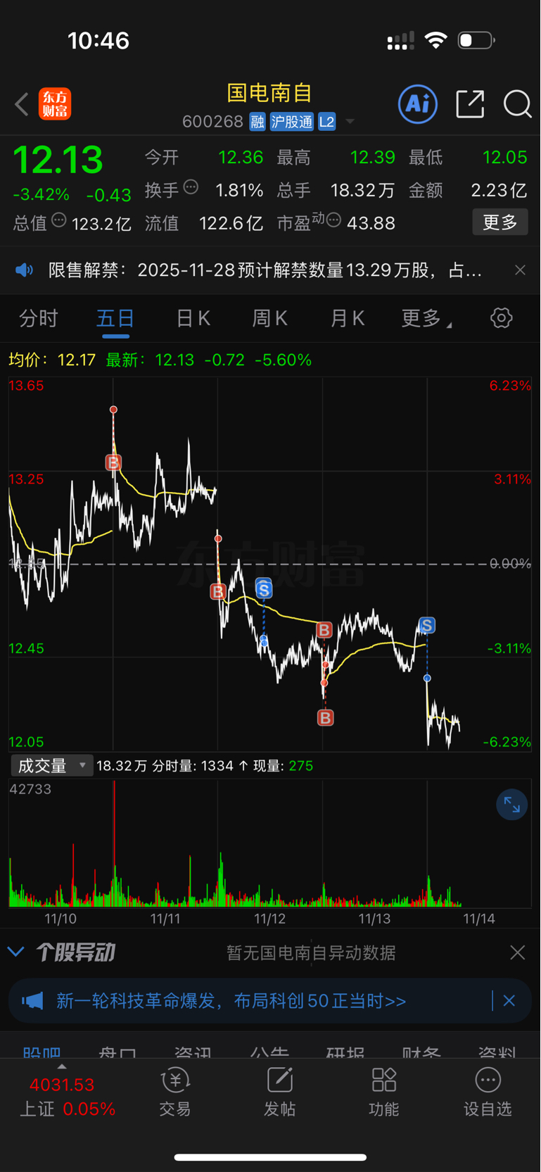 $国电南自(SH600268)$ 最高点我买入,就被监控。散户就是玩不过量化。