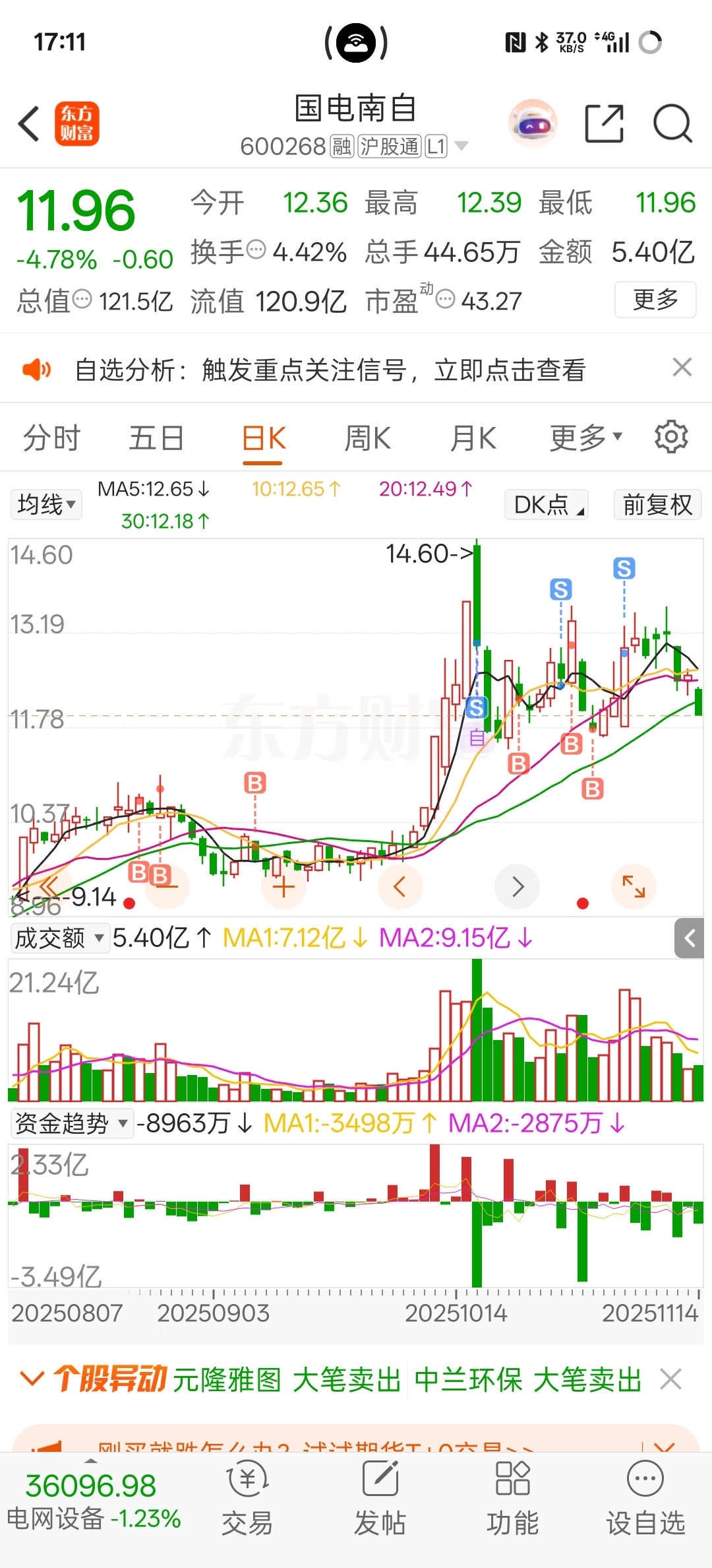 $国电南自(SH600268)$ 随便跌吧,大跌再来玩