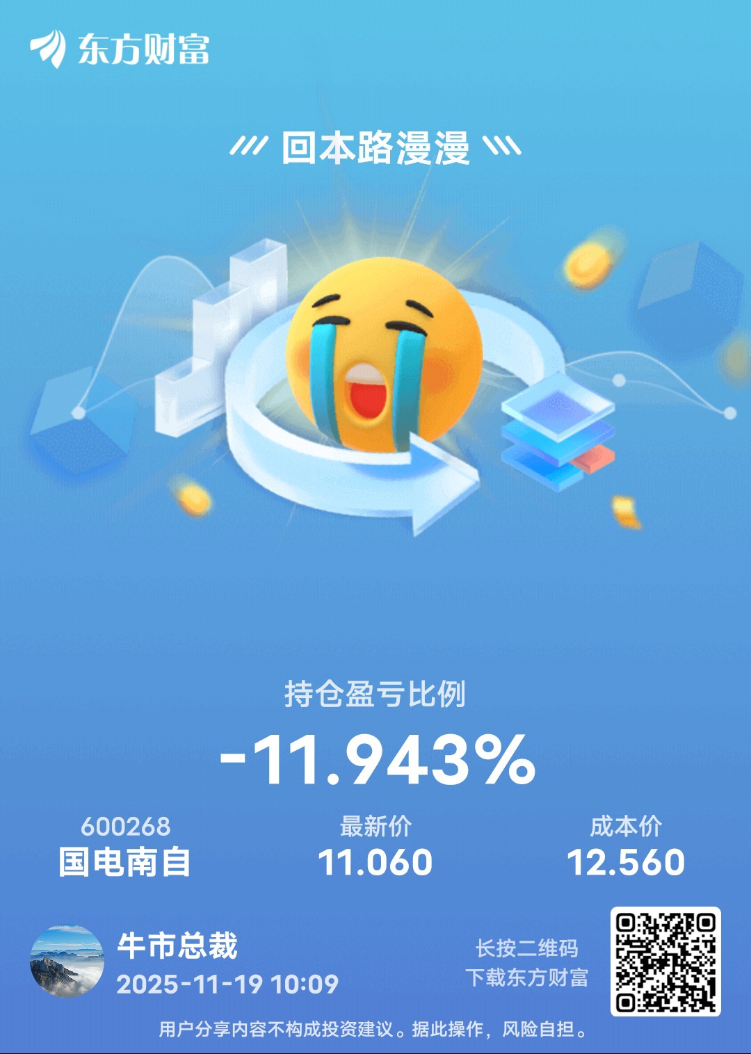 $国电南自(SH600268)$ 我伤心的走了,太不给力,我耗不起你呀