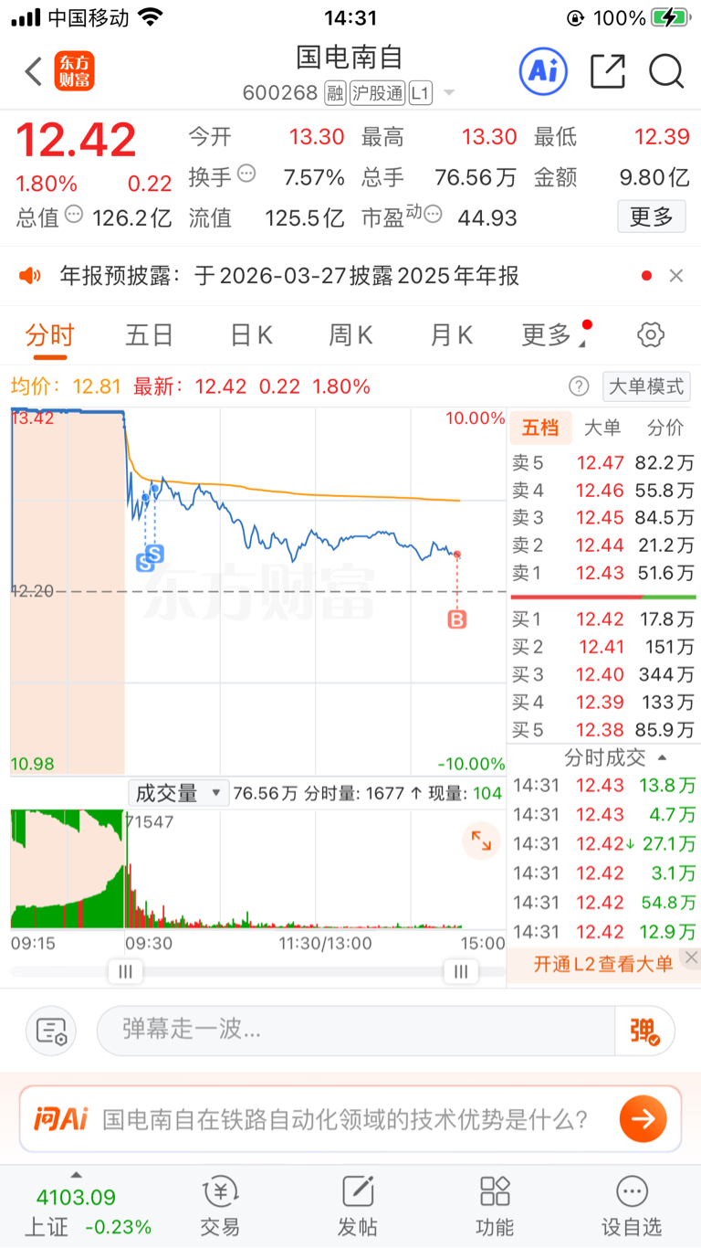 $国电南自(SH600268)$ 每日一T 接回来