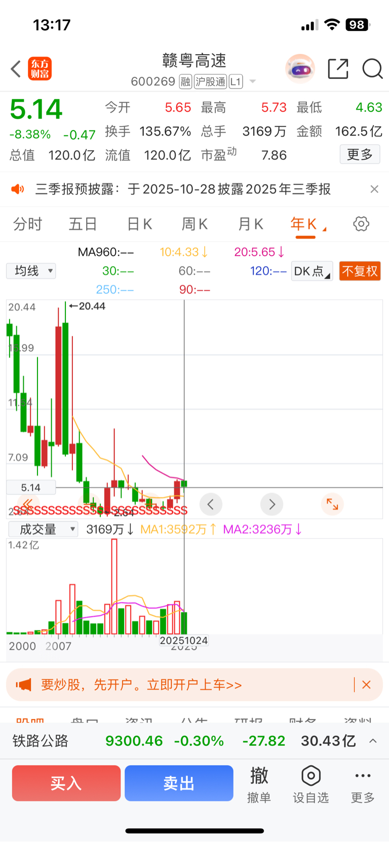 $赣粤高速(SH600269)$ 今年以来跌幅8%