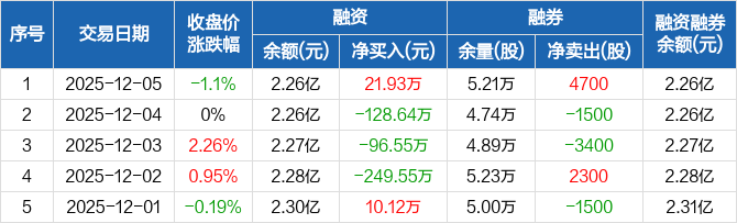 赣粤高速:融资净买入21.93万元,融资余额2.26亿元(12-05)