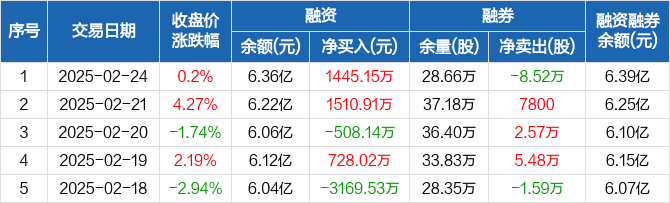 航天信息:融资净买入1445.15万元,融资余额6.36亿元(02-24)