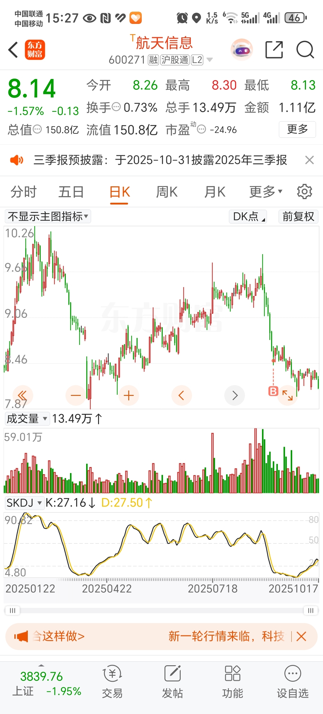 $航天信息(SH600271)$ 连着十天成交量低于十万,那个时候就是差不多到底了。