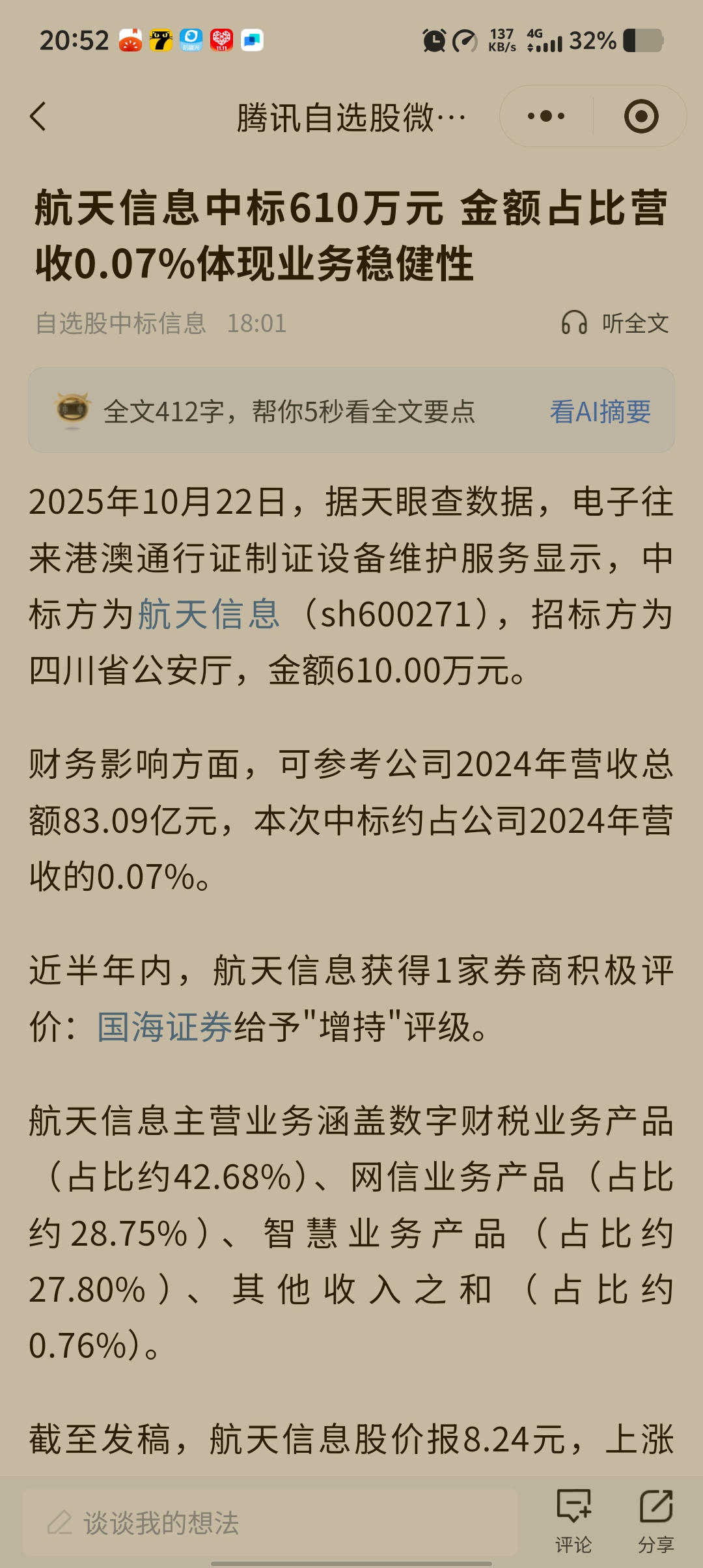 $航天信息(SH600271)$ 利好来了。。。。。。希望明天你能顶得住吧。别暴跌了。