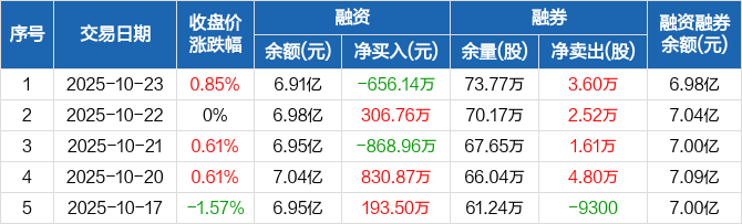 航天信息:融资净偿还656.14万元,融资余额6.91亿元(10-23)