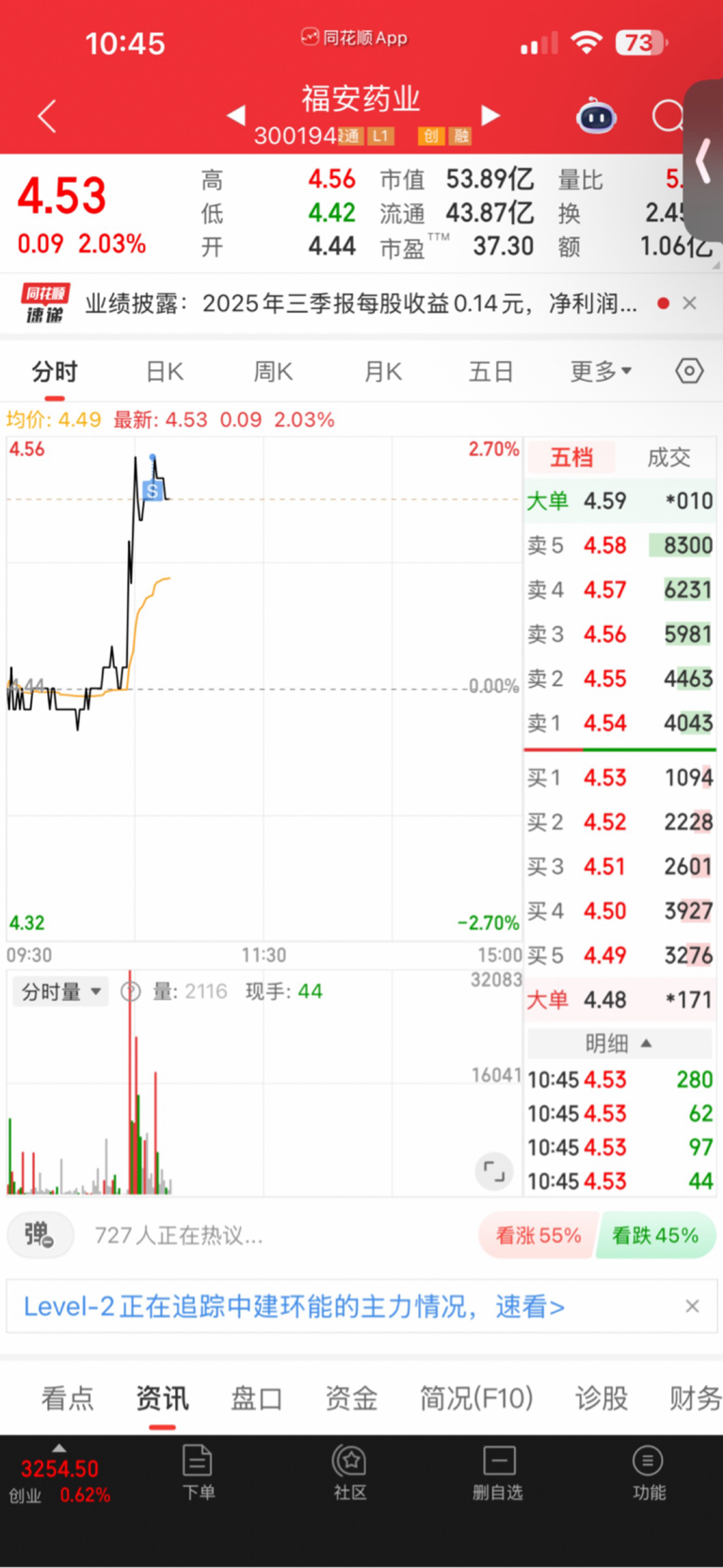 今天流感药卖了一部份,跌下来再买,不拉涨停的放大量小涨,我都不相信的