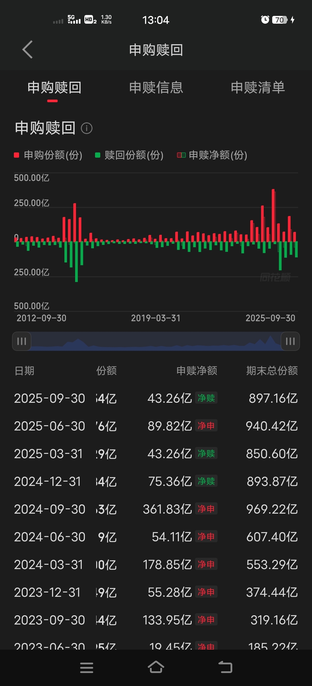 大盘四千再涨10多点就是四千五!下图是ETF的申购赎回,从23年6月100多亿到