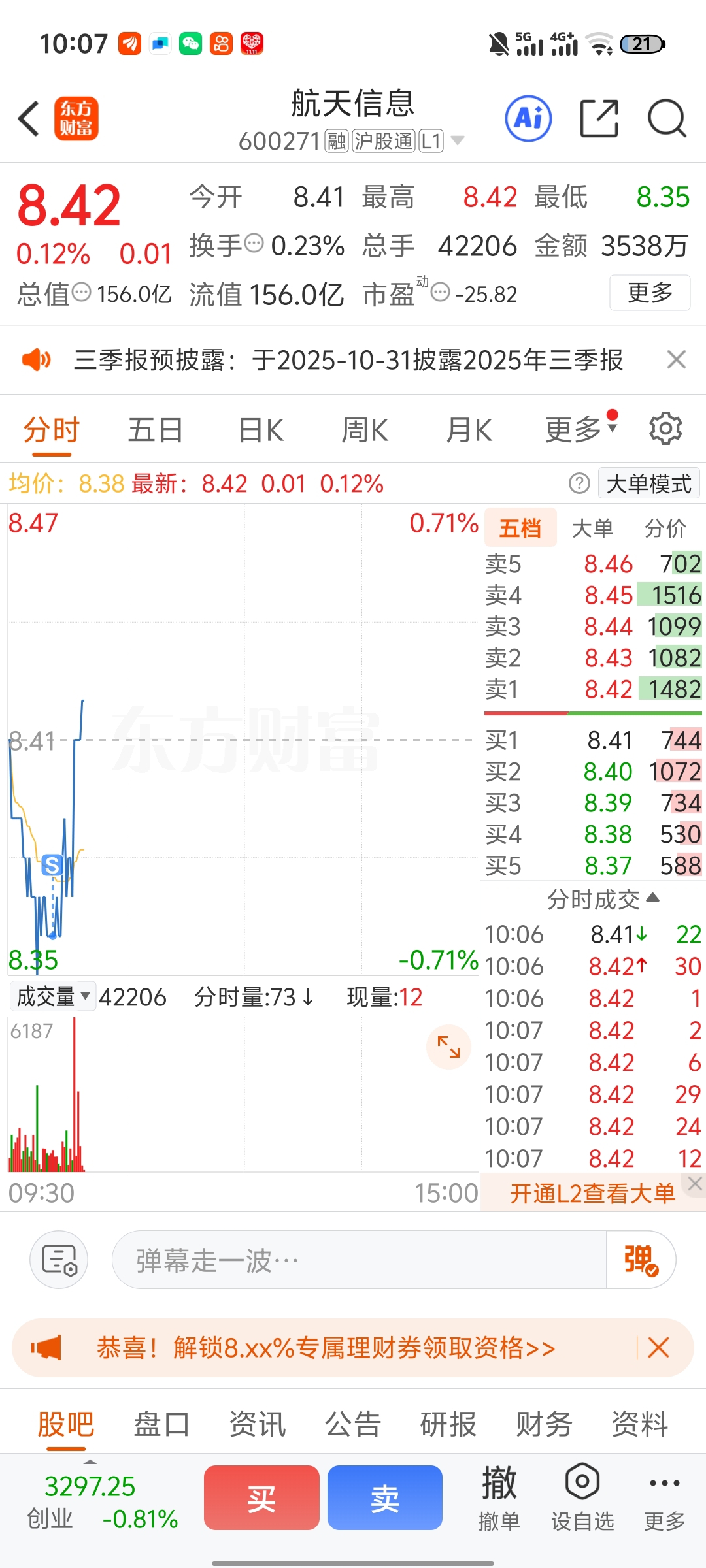 $航天信息(SH600271)$ 是的 我割啥涨啥