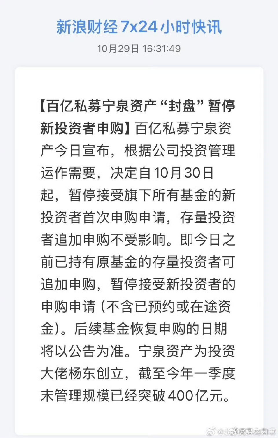 29号宁泉封盘今天陈光明还有好几个私募大佬又基金封盘限购!11月情况不容乐观啊兄